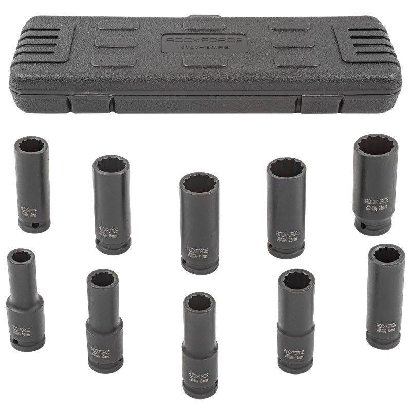 Набір головок ударних глибоких 1/2", 12гр., 10пр.в металевому кейсі Rock FORCE RF-4107-9MPB
