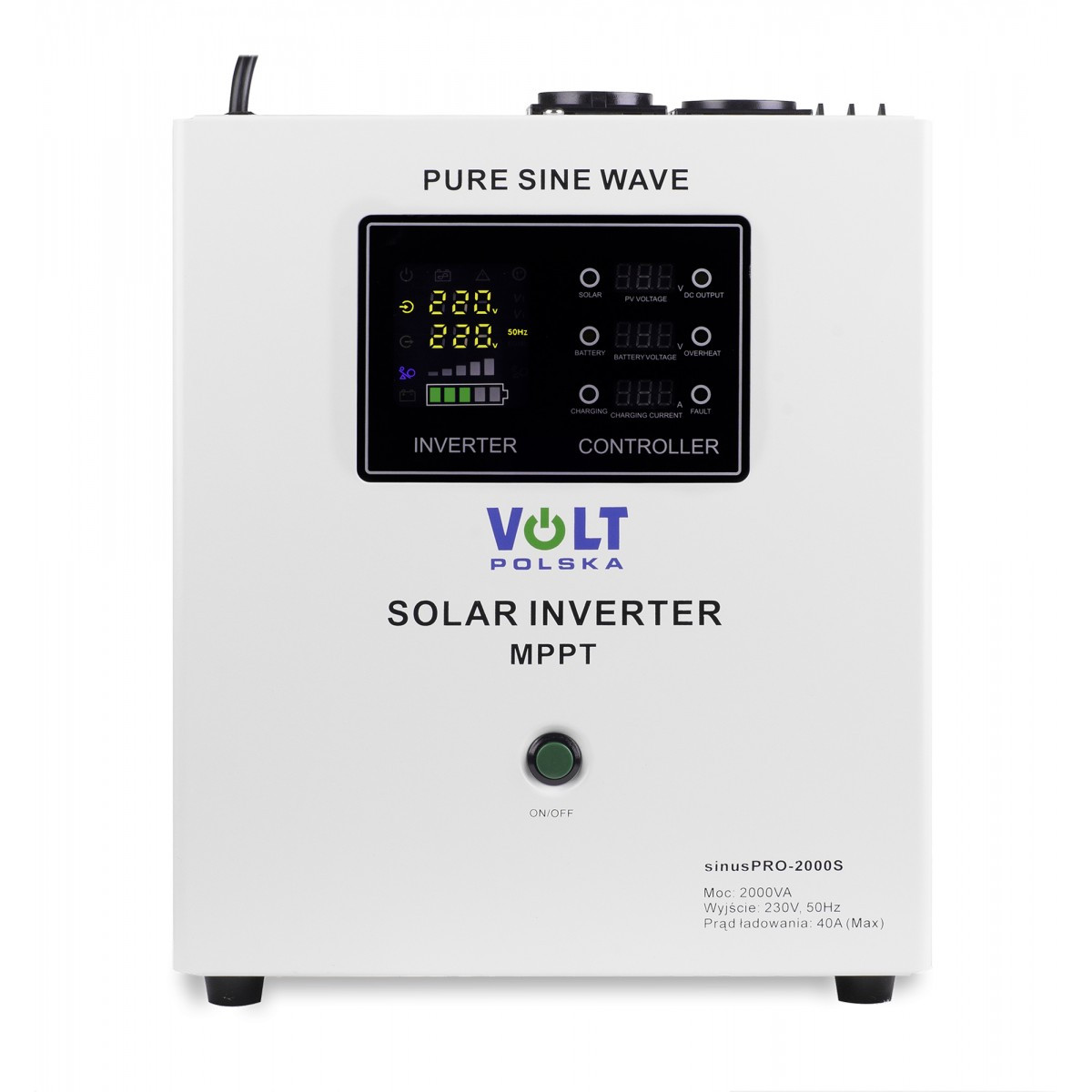 Аварійне джерело живлення SinusPRO 2000S 24V використовується для живлення електричних пристроїв, які потребують напруги змінного струму 230V від батарей 24V DC. Вбудований сонячний регулятор дозволяє додатково використовувати сонячну енергію для зарядки акумуляторів і живлення підключеного навантаження.